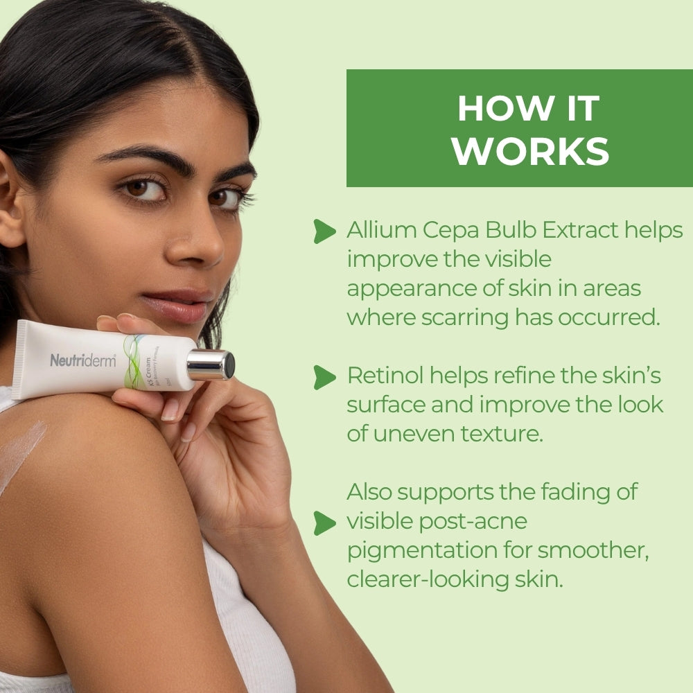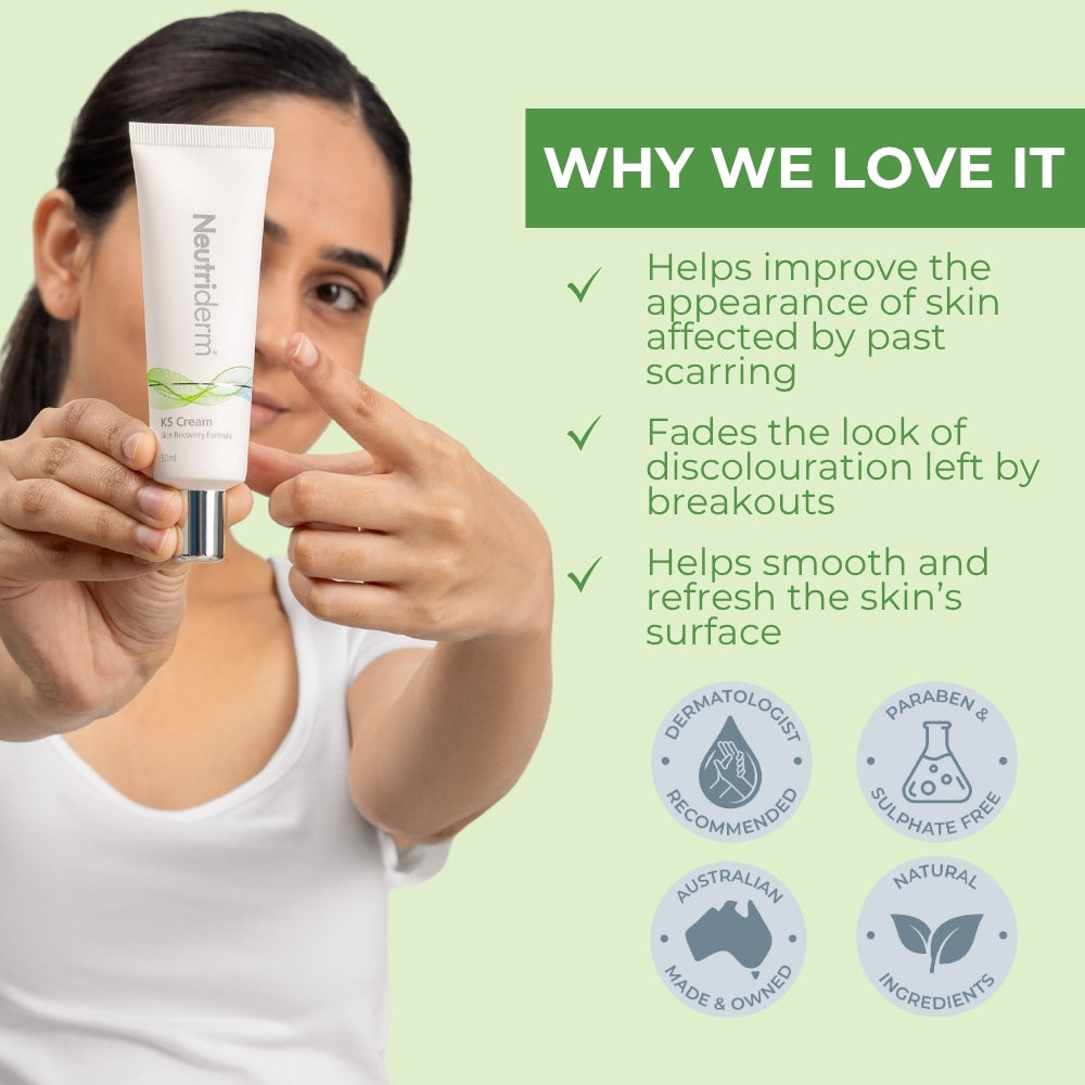 Neutriderm KS Cream is an advanced cosmetic formula designed to help visibly soften and improve the appearance of scars, acne marks, and stretch marks. Powered by a blend of cosmetic actives, this lightweight cream supports smoother, more even-looking skin.