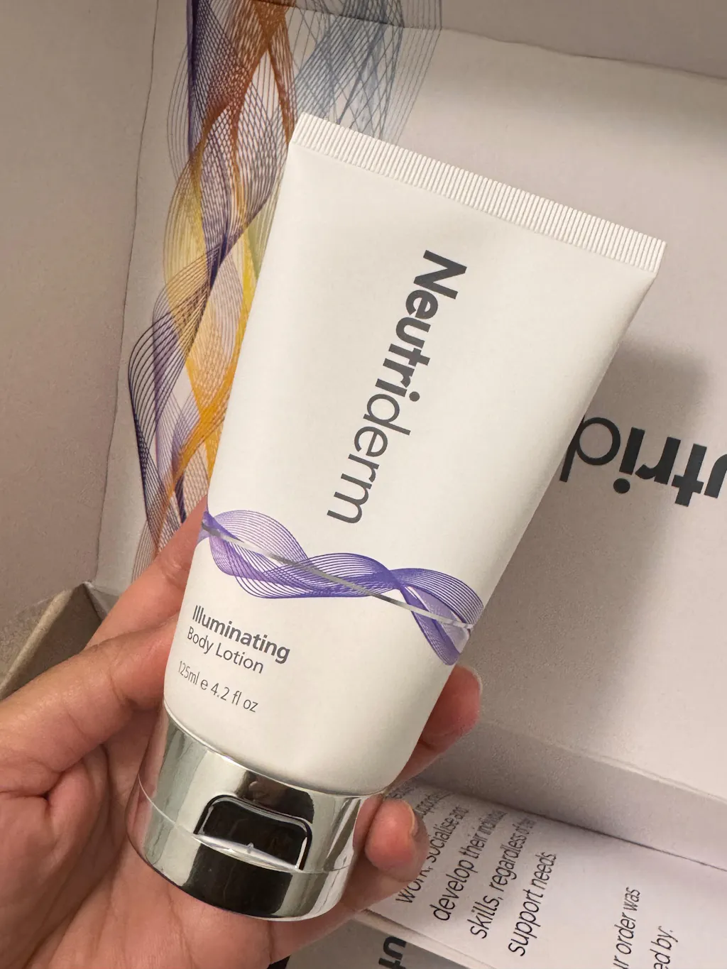 Neutriderm Illuminating Body Lotion is a lightweight, fast-absorbing formula designed to help visibly brighten and even the appearance of skin tone while supporting softness and hydration.