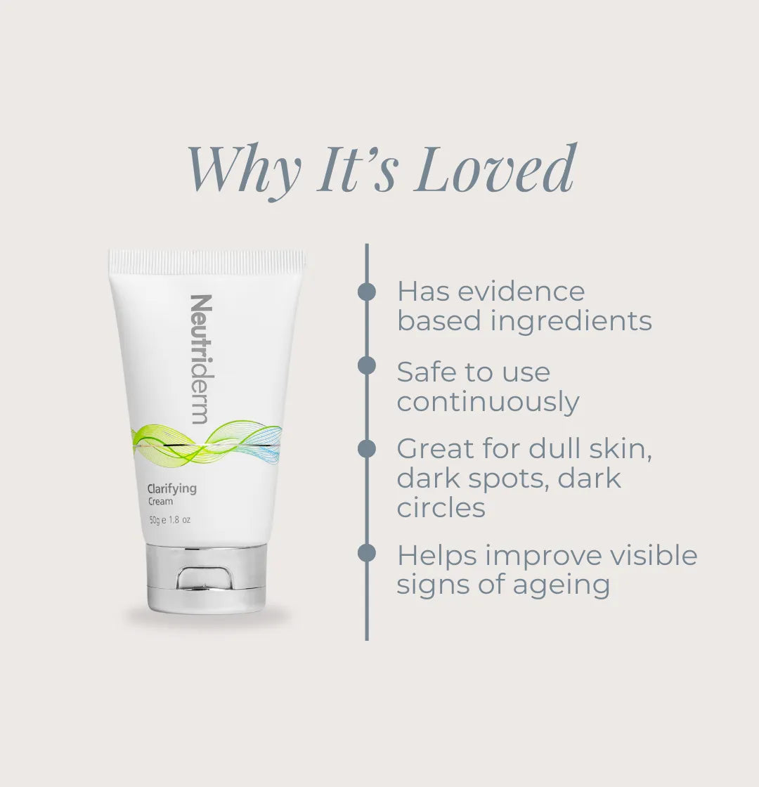 Clarifying Cream is a lightweight moisturiser designed to support the appearance of a clearer, more even-looking complexion. It is suitable for daily use on both the face and body and fits easily into morning and evening routines.